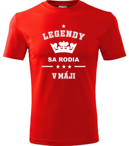 Červené tričko Legendy sa rodia v máji, tričko s potlačou, tričko červená, tričko pánske, veľkosti S, M, L, XL, XXL,...