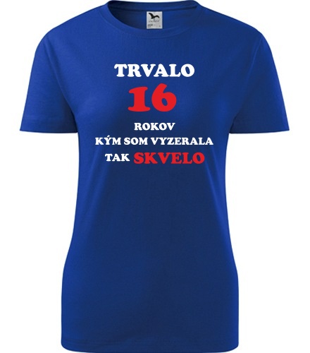Modré dámske tričko trvalo 16 rokov, tričko s potlačou, tričko modrá, tričko dámske, veľkosti S, M, L, XL,...