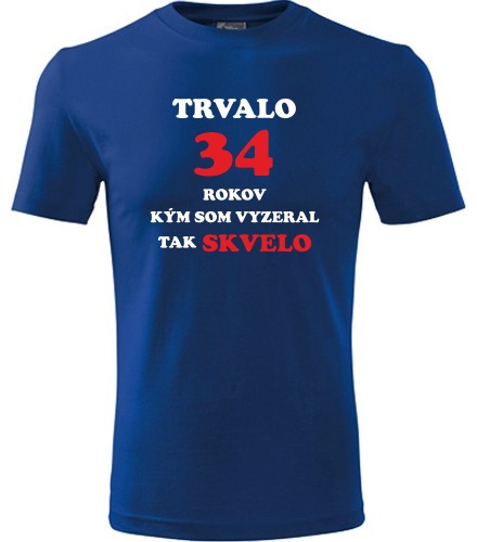 Modré tričko trvalo 34 rokov, tričko s potlačou, tričko modrá, tričko pánske, veľkosti S, M, L, XL, XXL,...