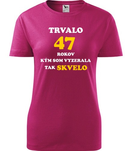 Purpurové dámske tričko trvalo 47 rokov, tričko s potlačou, tričko purpurová, tričko dámske, veľkosti S, M, L, XL,...