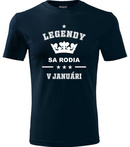 Tmavě modré tričko Legendy sa rodia v januári