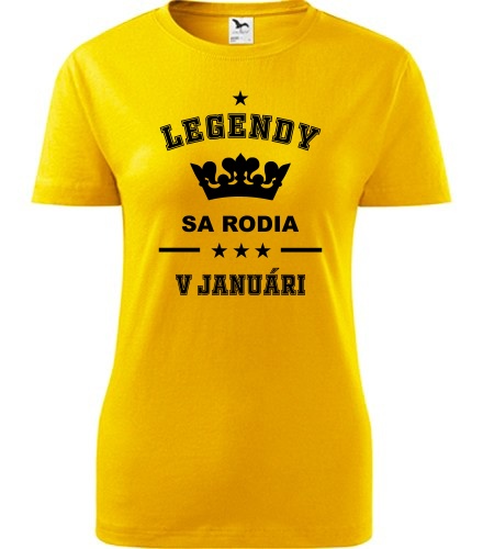 Žlté dámske tričko Legendy sa rodia v januári, tričko s potlačou, tričko žltá, tričko dámske, veľkosti S, M, L, XL,...