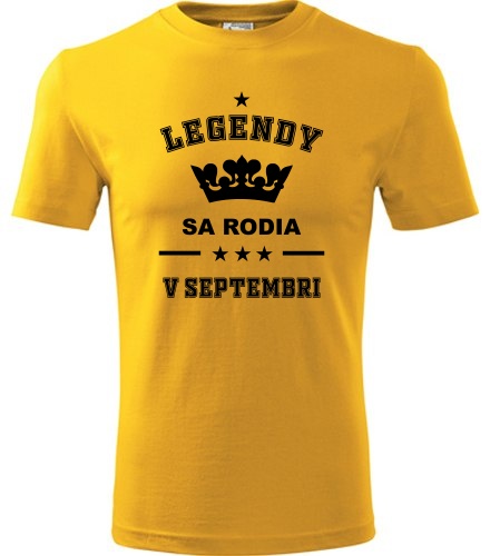 Žlté tričko Legendy sa rodia v septembri, tričko s potlačou, tričko žltá, tričko pánske, veľkosti S, M, L, XL, XXL,...
